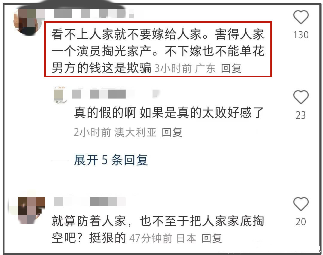 网友吐槽三太抠门,吐槽她们母女看不上人家,为什么还要让人家掏空积蓄办婚礼。甚至有网友用了“骗婚”个极端字眼。
